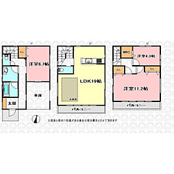 間取り内訳:洋室 6.7帖・リビングダイニングキッチン 19帖・洋室 11.2帖・洋室 4.3帖