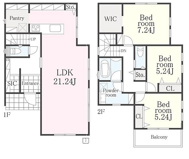 | 間取り | 3LDK 間取り内訳:リビングダイニングキッチン(1階)・洋室 7.2帖(2階)・洋室 5.2帖(2階)x2 |