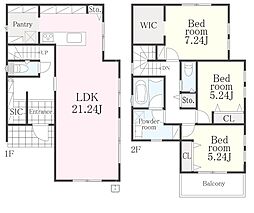 | 間取り | 3LDK 間取り内訳:リビングダイニングキッチン(1階)・洋室 7.5帖(2階)・洋室 5帖(2階)x2 |