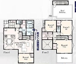 | 間取り | 4LDK 間取り内訳:リビングダイニングキッチン 19.4帖(1階)・洋室 4.8帖(1階)・洋室 6.6帖(2階)・洋室 6.3帖(2階)・洋室 5.2帖(2階) |
