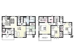 | 間取り | 3LDK 間取り内訳:リビングダイニングキッチン 21.5帖(1階)・洋室 8帖(2階)・洋室 6帖(2階)x2 |