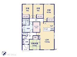 間取り内訳:リビングダイニングキッチン 16.5帖(1階)・洋室 6.5帖(1階)・洋室 5帖(1階)x2・和室 4.5畳(1階)