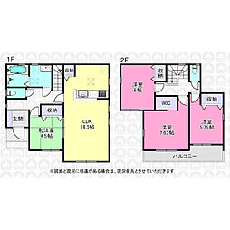 | 間取り | 4LDK 間取り内訳:リビングダイニングキッチン 16.5帖(1階)・和室 4.5畳(1階)・洋室 7.6帖(2階)・洋室 6帖(2階)・洋室 5.7帖(2階) |