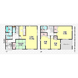 | 間取り | 4LDK 間取り内訳:リビングダイニングキッチン 16.5帖(1階)・和室 4.5畳(1階)・洋室 7.6帖(2階)・洋室 6帖(2階)・洋室 5.7帖(2階) |