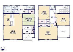 | 間取り | 4LDK 間取り内訳:リビングダイニングキッチン 16帖(1階)・和室 5.2畳(1階)・洋室 8帖(2階)・洋室 6帖(2階)x2 |
