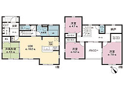 間取り内訳:リビングダイニングキッチン 17帖(1階)・洋室 7.2帖(2階)・洋室 7帖(2階)・洋室 5.2帖(2階)・収納 3帖(2階)