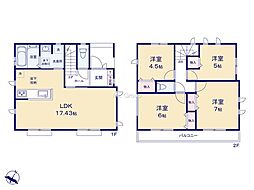 | 間取り | 4LDK 間取り内訳:リビングダイニングキッチン 17.4帖(1階)・洋室 4.5帖(2階)・洋室 5帖(2階)・洋室 6帖(2階)・洋室 7帖(2階) |