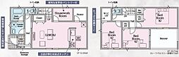 | 間取り | 3SLDK 間取り内訳:リビングダイニングキッチン 16帖(1階)・洋室 8帖(2階)・洋室 6帖(2階)x2・収納(1階) |