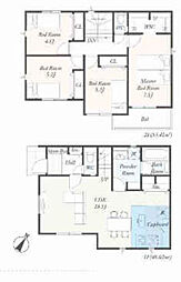 | 間取り | 4LDK 間取り内訳:洋室 6帖(2階)・洋室 6帖(2階)・リビングダイニングキッチン 15.7帖(1階)・和室 6畳(1階)・洋室 8.5帖(2階) |