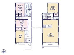 | 間取り | 1SLDK 間取り内訳:洋室 6帖(1階)・収納 6帖(1階)・収納 5.5帖(1階)・リビングダイニングキッチン 17.7帖(2階) |