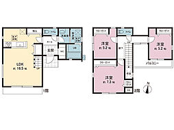 | 間取り | 4LDK 間取り内訳:リビングダイニングキッチン 16帖(1階)・和室 3畳(1階)・洋室 8.6帖(2階)・洋室 6.7帖(2階)・洋室 5.5帖(2階) |
