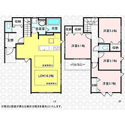 間取り内訳:リビングダイニングキッチン 20帖(1階)・洋室 7帖(2階)・洋室 5.2帖(2階)・洋室 5.2帖(2階)・洋室 5.2帖(2階)