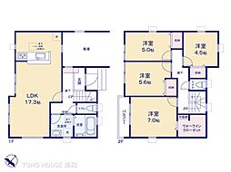 | 間取り | 4LDK 間取り内訳:リビングダイニングキッチン 17.3帖(1階)・洋室 7帖(2階)・洋室 5.6帖(2階)・洋室 5帖(2階)・洋室 4.5帖(2階) |
