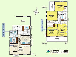 | 間取り | 4LDK 間取り内訳:リビングダイニングキッチン 21.6帖(1階)・洋室 7.5帖(2階)・洋室 5.2帖(2階)x2・洋室 4.5帖(2階)・ダイニングキッチン |