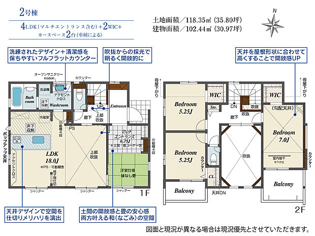 102.44m2(約30.98坪)~107.52m2(約32.52坪) |