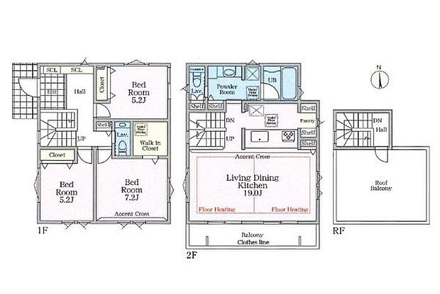 | 土地面積 | 140.44m2(1号棟)~143.37m2(3号棟) | ||