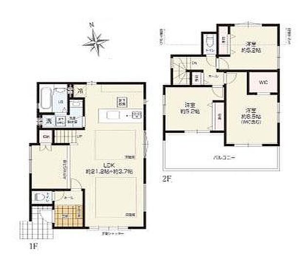 | 間取り | 3LDK 間取り内訳:リビングダイニングキッチン 24.9帖(1階)・洋室 5.2帖(2階)・洋室 8.5帖(2階)・洋室 5.2帖(2階) |