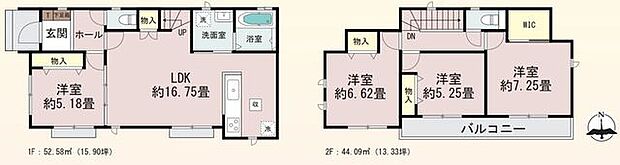 • 「建築条件付き土地」の「建物プラン例」は、土地購入者の設計プランの一例であり、プランの採用可否は任意です。