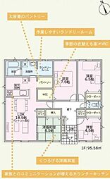 | 間取り | 3LDK(タタミコーナー4.5帖) 間取り内訳:リビングダイニングキッチン 18帖(1階)・洋室 7.5帖(1階)・洋室 6.5帖(1階)・洋室 6帖(1階) |