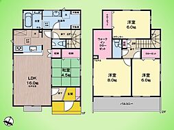 | 間取り | 5LDK 間取り内訳:リビングダイニングキッチン 17.3帖(1階)・洋室 5.2帖(1階)・洋室 5.2帖(2階)・洋室 6帖(2階)・洋室 4.5帖(2階)・洋室 8.2帖(2階) |