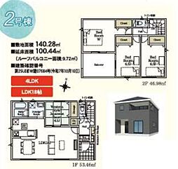 | 間取り | 4LDK 間取り内訳:リビングダイニングキッチン 18帖(1階)・和室 5畳(1階)・洋室 5.2帖(2階)・洋室 6帖(2階)・洋室 8帖(2階) |