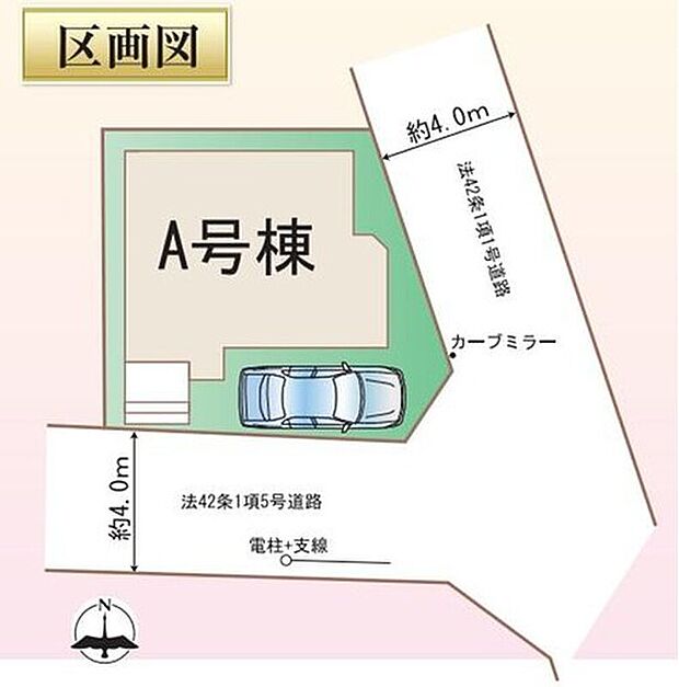 道路幅:4m、アスファルト舗装、東:4m ・ 南:4m 公道
