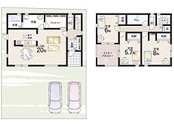| 間取り | 4SLDK 間取り内訳:リビングダイニングキッチン 18.5帖(1階)・洋室 5.4帖(1階)・洋室 9帖(2階)・洋室 6.7帖(2階)・洋室 4.8帖(2階)・収納(2階) |