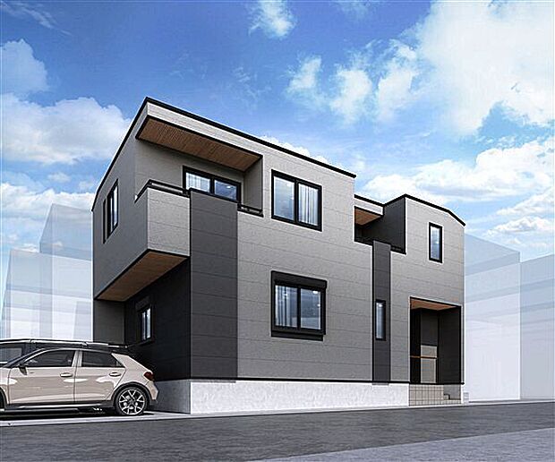 陽当り良好な東南×南西角地。並列2台駐車可能な2階建て新築住宅です。