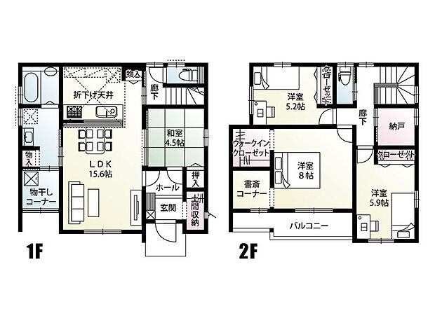 間取り 2号棟:3LDK+S、3号棟・5号棟・6号棟:4LDK、4号棟:4LDK+S 建物階 木造2階建