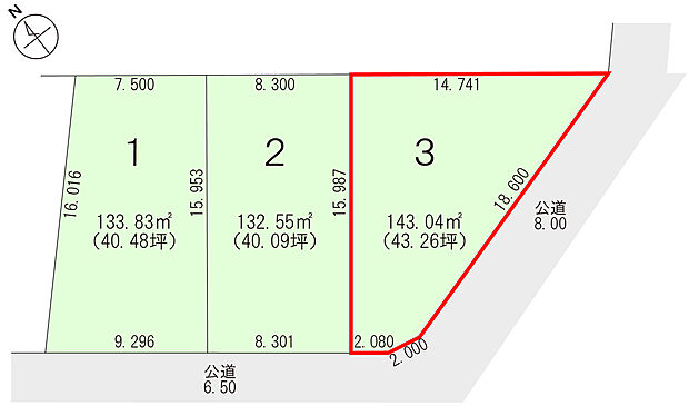 土地面積 132.55m2(40.09坪) ~ 143.04m2(43.26坪)