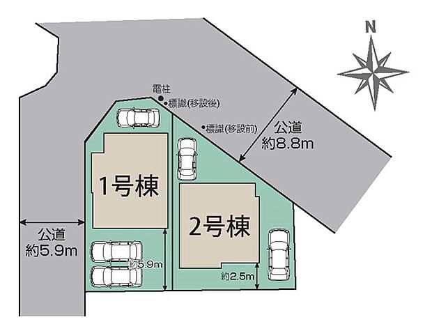 2号棟:北東8.8m /1号棟:北東8.8m 西5.9m