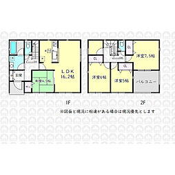 間取り内訳:リビングダイニングキッチン 16.2帖(1階)・和室 4.5畳(1階)・洋室 6帖(2階)・洋室 5帖(2階)・洋室 7.5帖(2階)