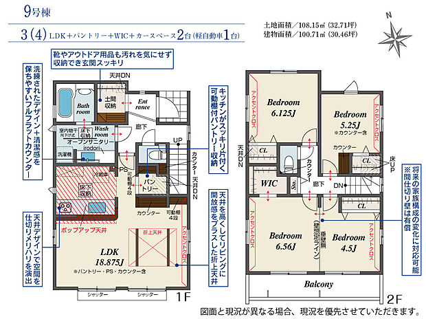 | 土地面積 | 108.01m2(約32.67坪)~110.91m2(約33.55坪) | ||