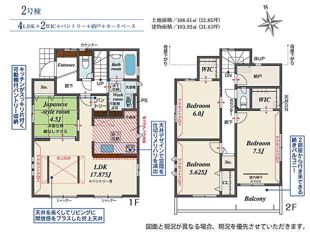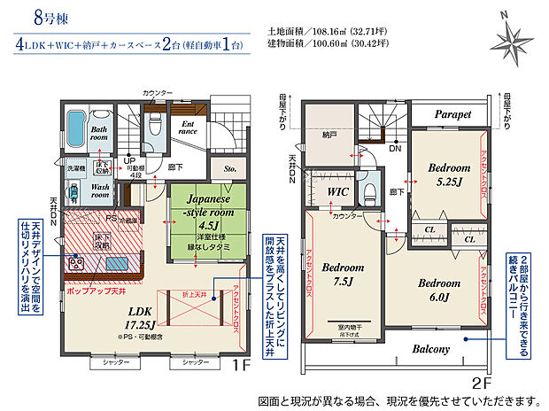 | 建物面積 | 99.57m2(約30.11坪)~107.85m2(約32.62坪) | ||