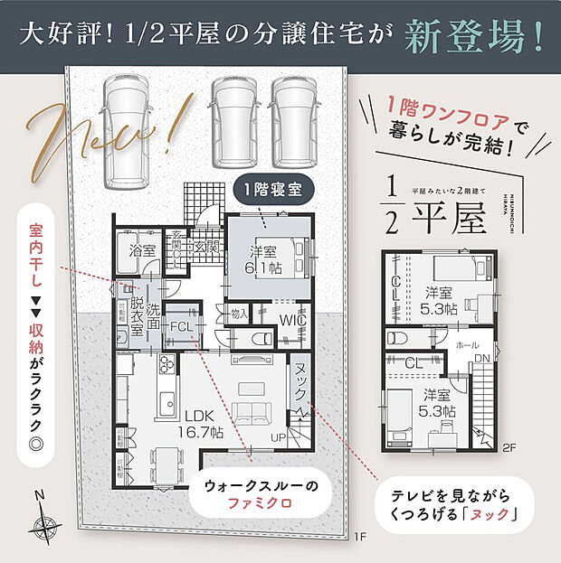 間取り 【1/2平屋】3LDK+ヌック 建物階 木造2階建て