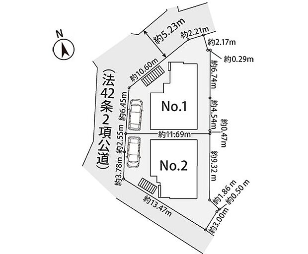 1号棟:西5.2m 北西5.2m /2号棟:西5.2m