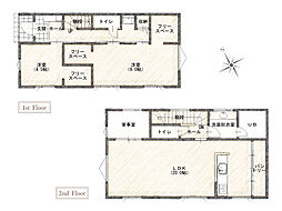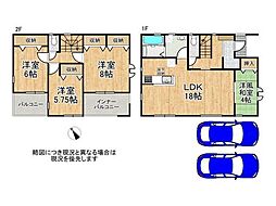 間取り内訳:リビングダイニングキッチン 18帖(1階)・和室 5.2畳(1階)・洋室 7.5帖(2階)・洋室 6.2帖(2階)・洋室 6帖(2階)