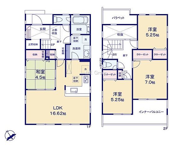 • 「建築条件付き土地」の「建物プラン例」は、土地購入者の設計プランの一例であり、プランの採用可否は任意です。