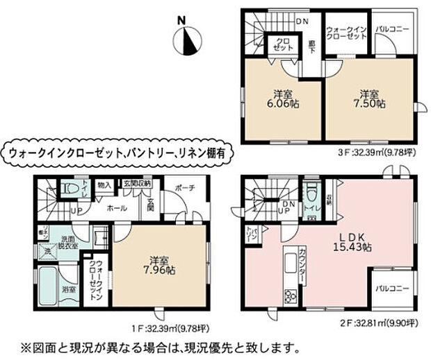 | 建物面積 | 97.59m2~104.85m2 | ||