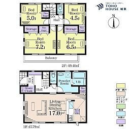 | 間取り | 4LDK 間取り内訳:リビングダイニングキッチン 17帖(1階)・洋室 4.5帖(1階)・洋室 7.5帖(2階)・洋室 6.3帖(2階)・洋室 5帖(2階) |