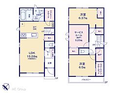 | 間取り | 2SLDK 間取り内訳:リビングダイニングキッチン 15.2帖(1階)・洋室 6.3帖(2階)・洋室 6.5帖(2階)・収納 5.2帖(2階) |