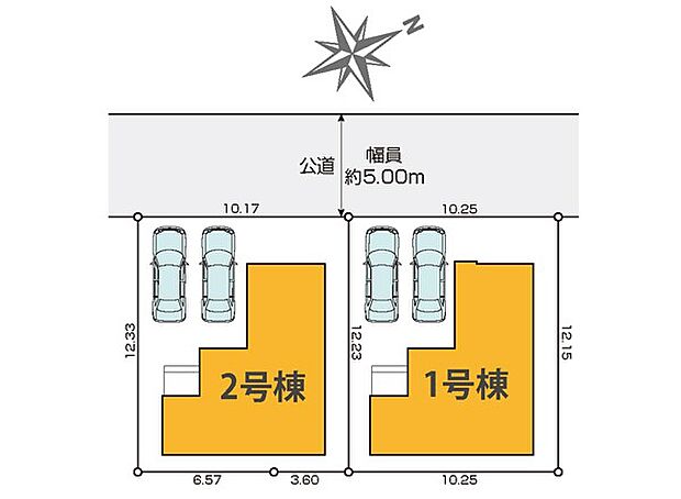 2号棟:北西5m /1号棟:北西5m