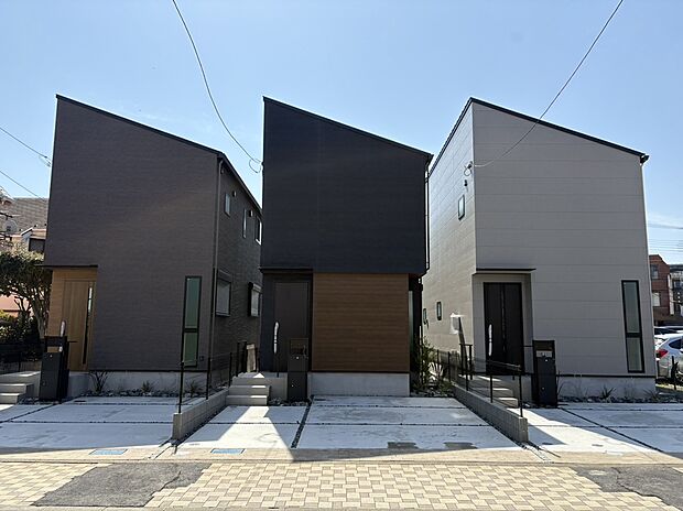 • 【現地写真(A・B・C号棟)】■閑静な住宅街に佇む高級感のある外観。