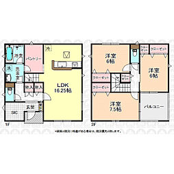 | 間取り | 4LDK 間取り内訳:リビングダイニングキッチン 23.4帖(1階)・洋室 7.1帖(2階)・洋室 5.2帖(2階)x2・洋室 5帖(2階) |