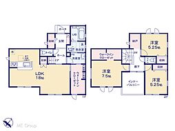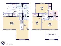 | 間取り | 3SLDK 間取り内訳:リビングダイニングキッチン 20.5帖(1階)・洋室 7.5帖(2階)・洋室 6帖(2階)x2・収納(2階) |