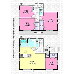| 間取り | 4LDK 間取り内訳:リビングダイニングキッチン 15.5帖(1階)・洋室 6.2帖(1階)・洋室 7帖(2階)・洋室 6.5帖(2階)・洋室 5.5帖(2階) |
