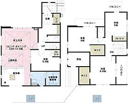 間取り内訳:リビングダイニングキッチン 21.7帖(1階)・洋室 7.2帖(2階)・洋室 6帖(2階)x2・洋室 5.2帖(2階)