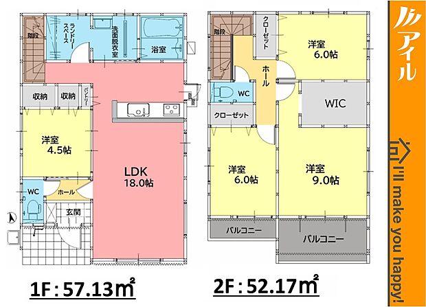 | 建物面積 | 107.23m2~109.30m2 | ||