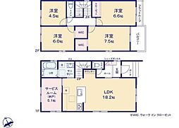 間取り内訳:リビングダイニングキッチン 18帖・洋室 7.2帖(2階)・洋室 6帖(2階)・洋室 5.2帖(2階)・洋室 4.5帖(2階)