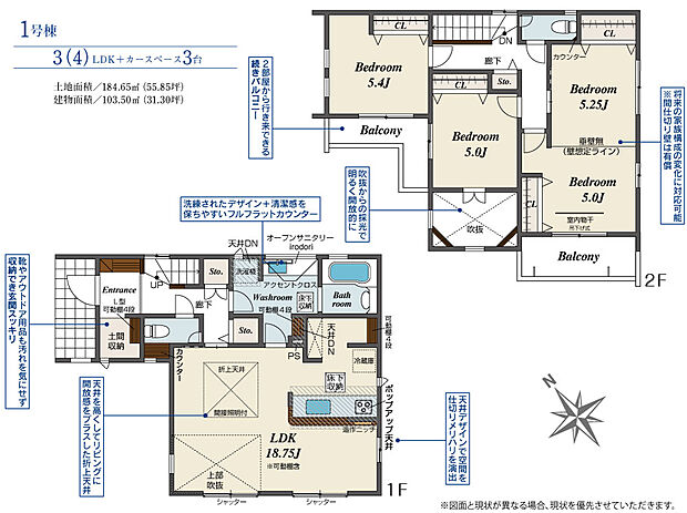 184.65m2(約55.85坪) |